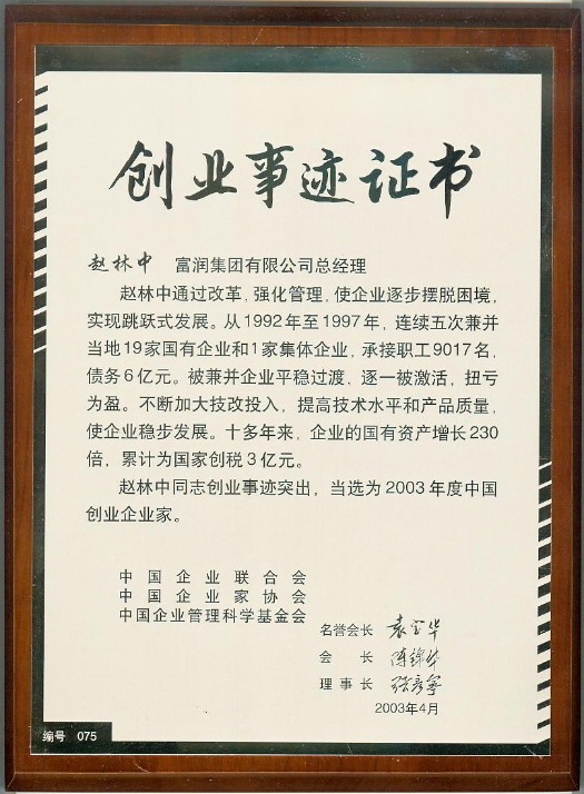 您現在的位置:富潤控股集團 >> 集團概況 >> 企業榮譽