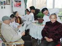 | 趙林中與康樂中心休養(yǎng)員聊家常 |